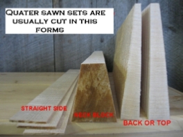 GÉNÉRALEMENT, COMME LE MONTRE LA PHOTO CI-DESSOUS, LES FOND ET LES DESSUS SONT DÉJÀ SCIÉS EN DEUX AVEC LES FACES INTÉRIEURES RABOTÉES CE QUI VOUS PERMET DE BIEN VOIR LA QUALITÉ DE L'ONDE POUR L’ÉRABLE ET LES ANNEAUX DE CROISSANCE POUR L’ÉPINETTE.